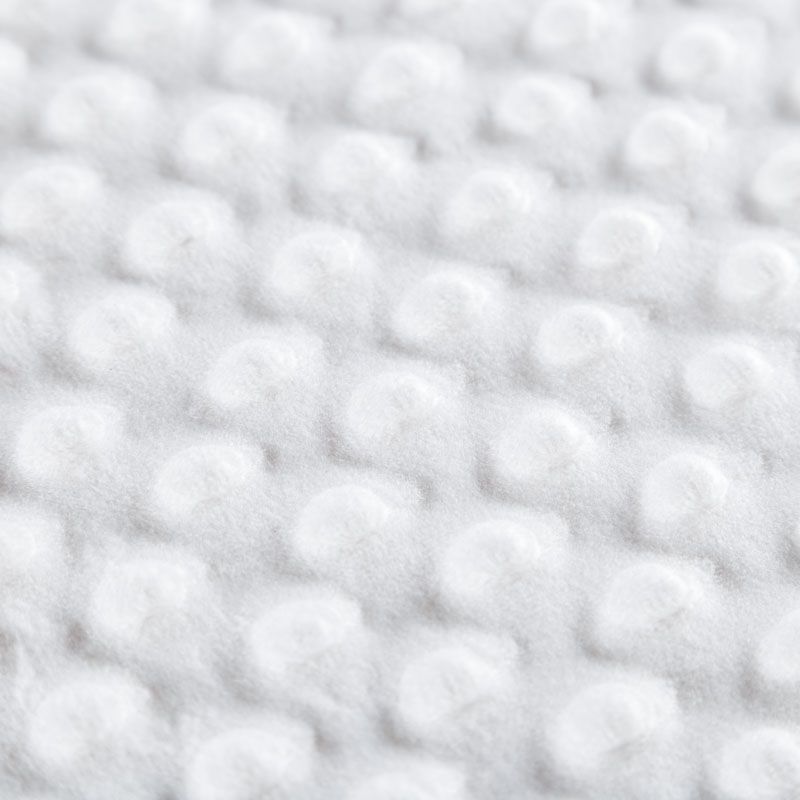 Мягкое, нежное, приятное на ощупь, с гладкой текстурой, красивым блестящим эффектом. Фактура – пузырьки. На лицевой стороне мягкий ворс 1 мм. Изнаночная сторона  — гладкое  трикотажное полотно без ворса. Используется  для пошива покрывал, пледов, одеял, бортиков в кроватку, конвертов для новорождённых, мягких игрушек, комбинезонов, пижам, домашней одежды, лежанок для домашних питомцев.