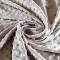 Мягкое, нежное, приятное на ощупь, с гладкой текстурой, красивым блестящим эффектом. Фактура – пузырьки. На лицевой стороне мягкий ворс 1 мм. Изнаночная сторона — гладкое трикотажное полотно без ворса. Используется для пошива покрывал, пледов, одеял, бортиков в кроватку, конвертов для новорождённых, мягких игрушек, комбинезонов, пижам, домашней одежды, лежанок для домашних питомцев.
