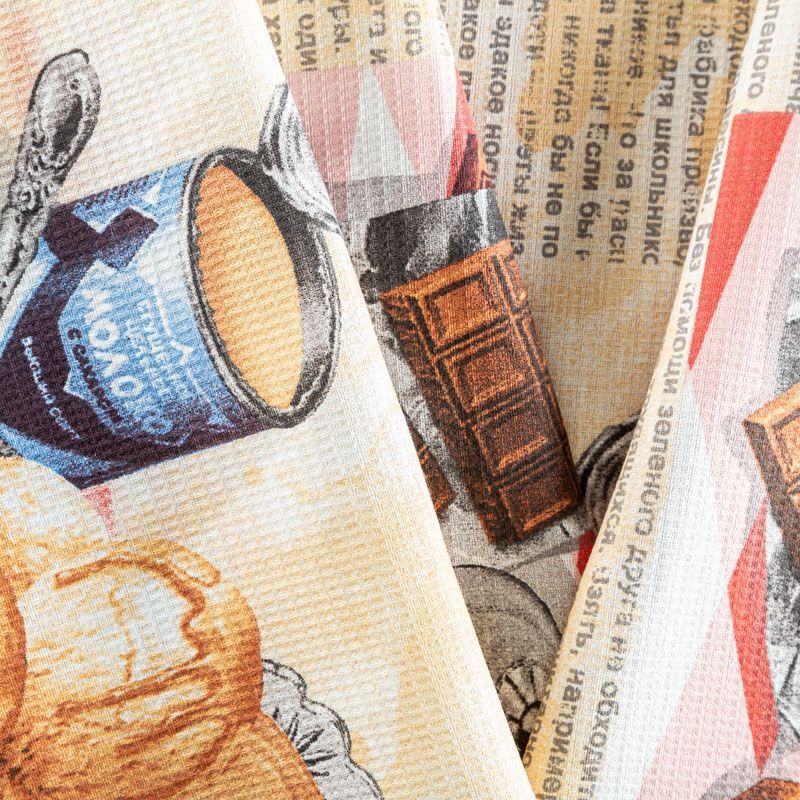 Качественная натуральная хлопчатобумажная ткань, обладающая высокой гигроскопичностью, с "газетным принтом". Универсальный материал, из которого шьют кухонные полотенца, скатерти, прихватки, салфетки.