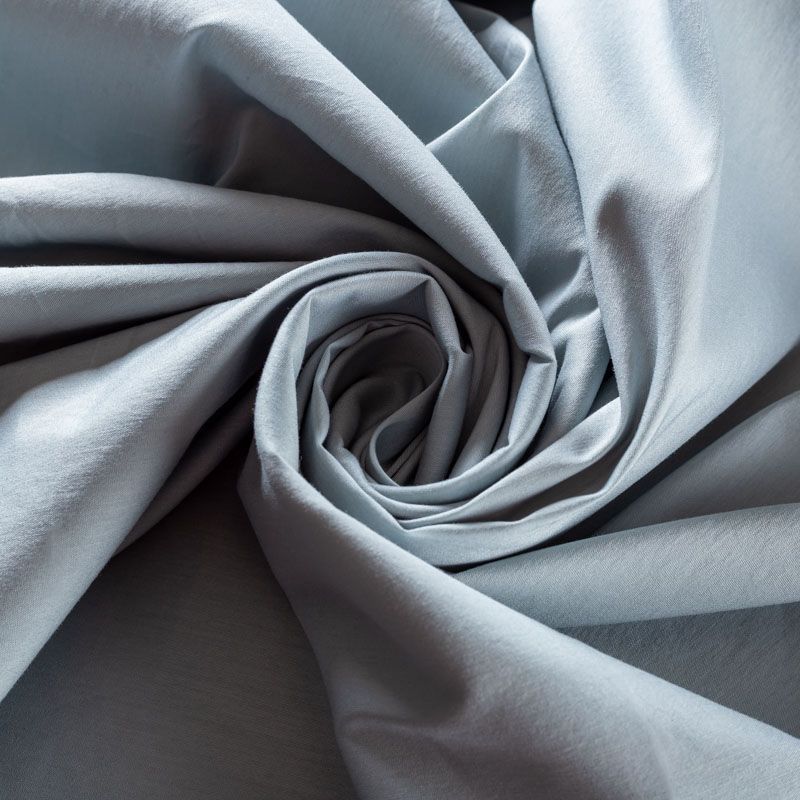 Однотонный плательно-рубашечный хлопковый поплин серо-голубого оттенка. Ткань лёгкая, слегка прозрачная, поверхность матовая, гладкая, приятная к телу, хорошо драпируется, тянется за счет эластана в составе. Прекрасно подойдет блузы, платья-рубашки, летнего сарафана, туники.