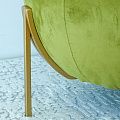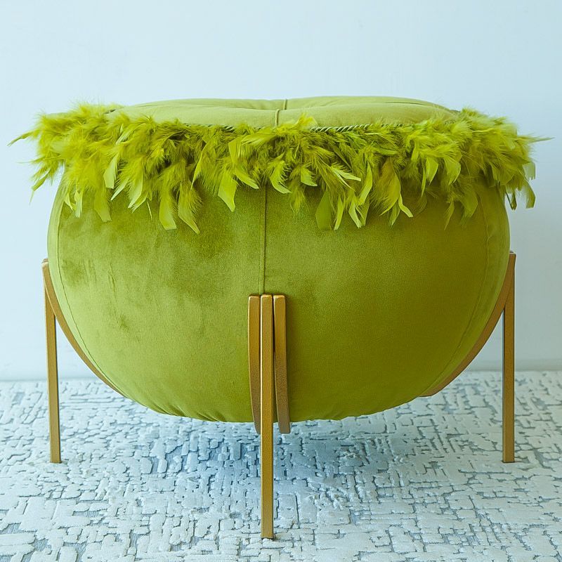 Ориганальный дизайнерский пуф выполнен из бархата грушевого оттенка, декорирован кантом и перьями. Ножки выполнены из окрашенного металлического профиля. Диаметр сидения - 50 см, диаметр в основании - 65 см, высота от пола - 51 см.