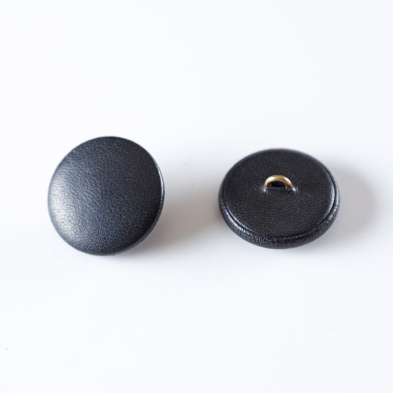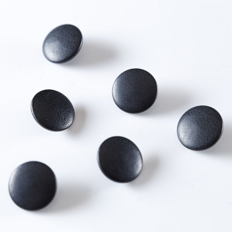 Пуговица на ножке, обтянутая экокожей черного цвета.