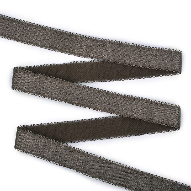 Классическая бретелечная резинка используется для обработки стана бюстгальтера, а также для бретелей. Края фигурные, блестящая. Плотность 12 ± 0.3 г/м. Растяжимость 55 ± 10 %.