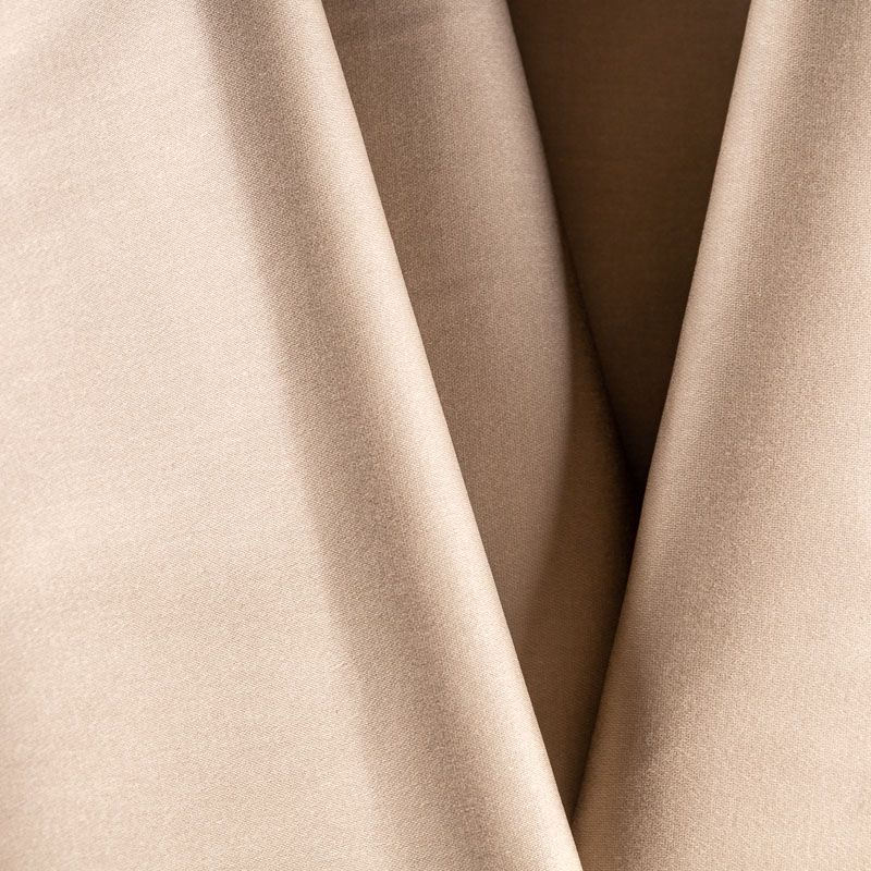 Поверхность гладкая со сдержанным блеском, ткань плотная, но не толстая, хорошо держит форму, тянется