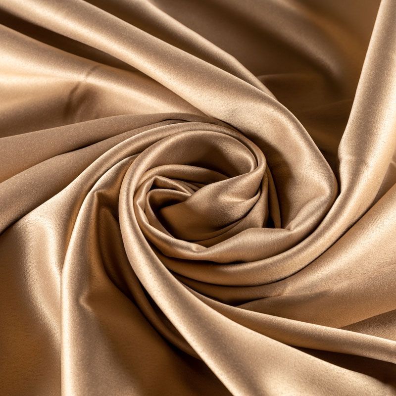 Прочная костюмно-плательная ткань с гладкой шелковистой лицевой поверхностью. Приятная на ощупь, отлично драпируется. Ткань плотная с небольшим добавлением спандекса (стрейч), имеет матовый сатиновый, очень благородный блеск. Отлично подойдет для пошива практически любого изделия: платьев, костюмов, юбок, брюк, бомберов, а также свадебных и вечерних платьев, создания корсетов.