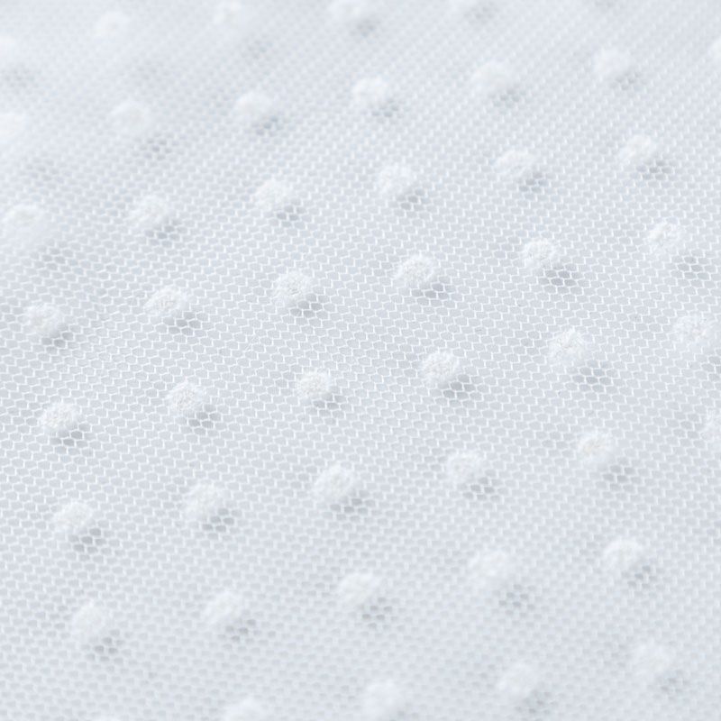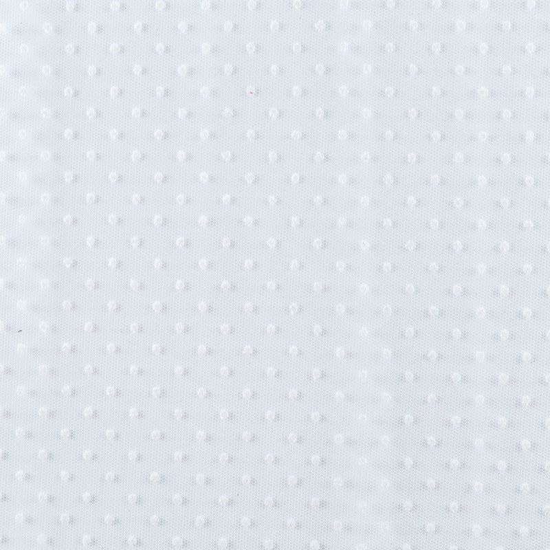 Тонкое, нежное, мягкое и прозрачное полотно, состоящее из мелких ячеек, на которых нанесены рельефные горошины.  Красиво драпируется, тянется, применяется для декорирования деталей одежды, например, рукавов изделия, для пошива нарядной и повседневной одежды: топов, блузок, пышных юбок и платьев.