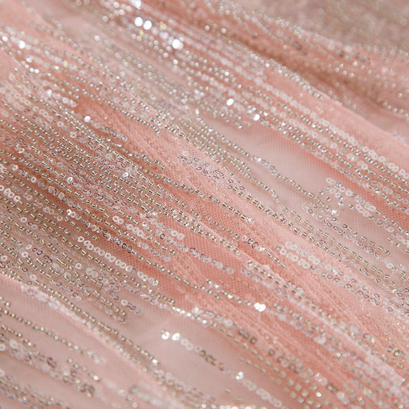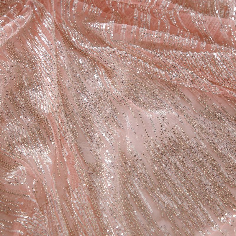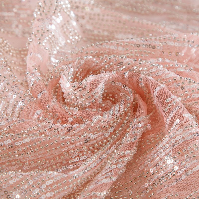 Сетка с бисером и пайетками 050-17615 кораллово-розовый в Якутске