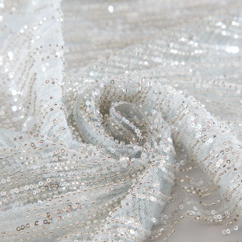 Сетка с бисером и пайетками 050-17616 разбеленный голубой в Якутске