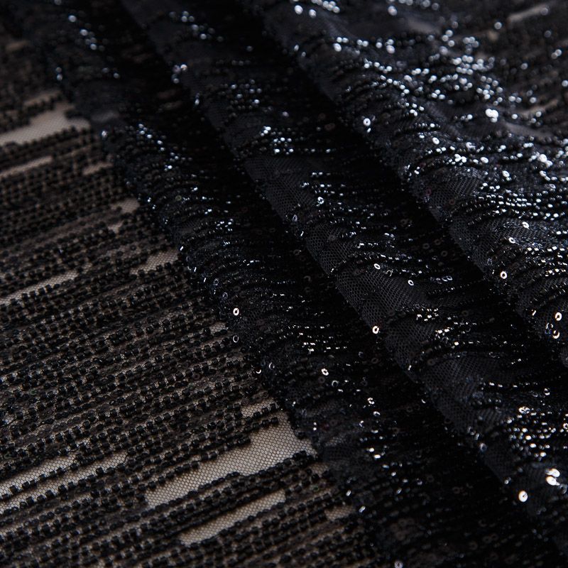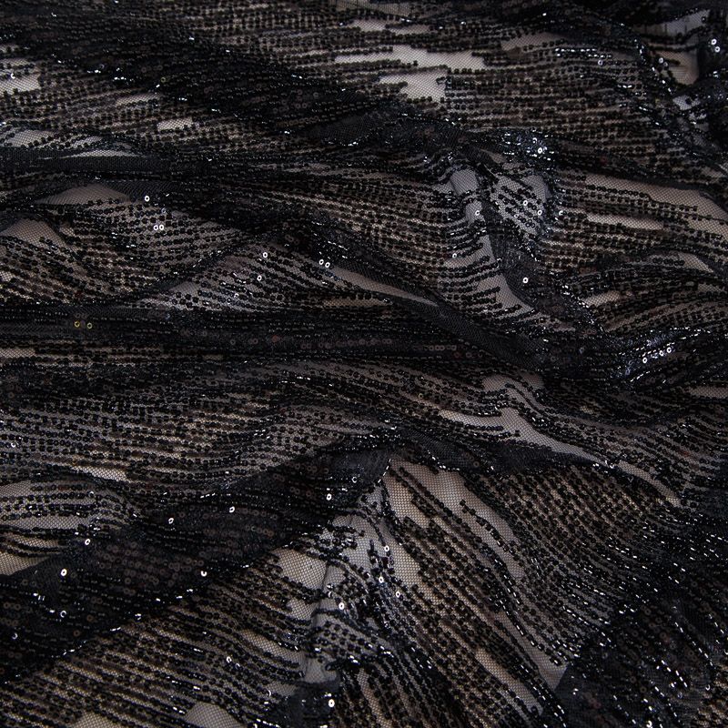 Сетка с бисером и пайетками 050-17617 черный