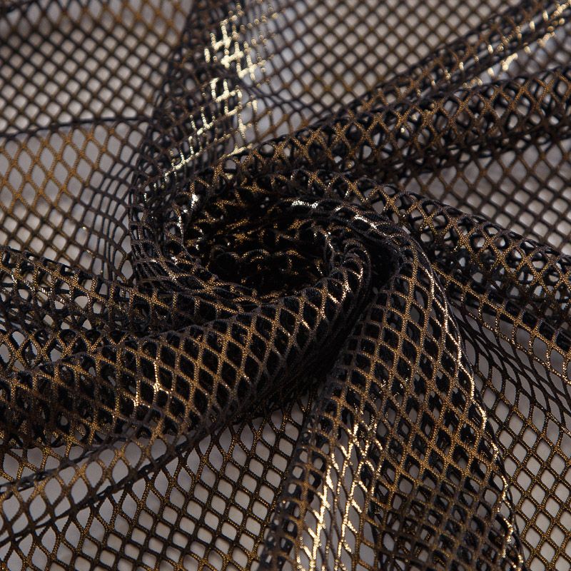 Рельефный полупрозрачный материал с сетчатой структурой. Поверхность полотна с металлизированным напылением, которое придает материалу легкий блеск и мерцание. Полотно мягкое, растяжимое во всех направлениях. Сетки нашли свое применение в процессе пошива и последующего декора вечерних нарядов, свадебных платьев, спортивной одежды, театральных костюмов.
