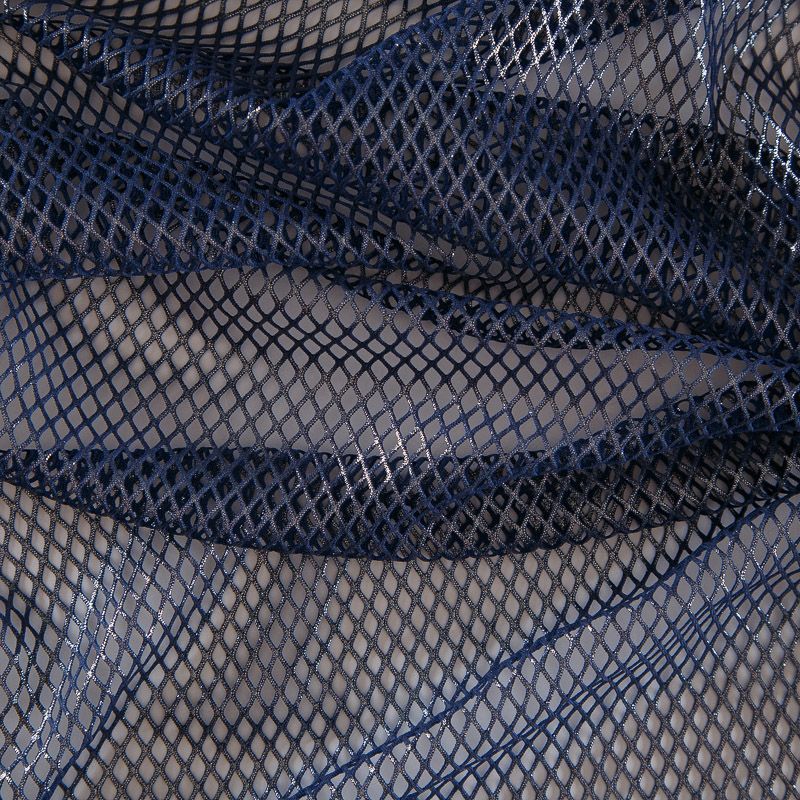 Рельефный полупрозрачный материал с сетчатой структурой. Поверхность полотна с металлизированным напылением, которое придает материалу легкий блеск и мерцание. Полотно мягкое, растяжимое во всех направлениях. Сетки нашли свое применение в процессе пошива и последующего декора вечерних нарядов, свадебных платьев, спортивной одежды, театральных костюмов.