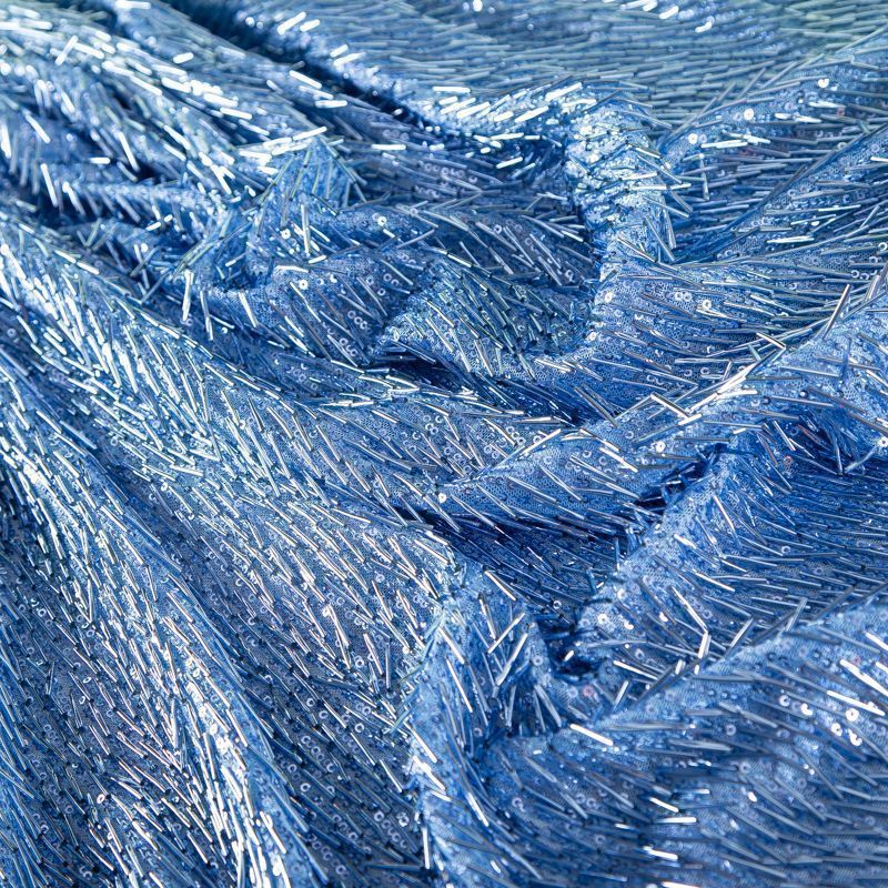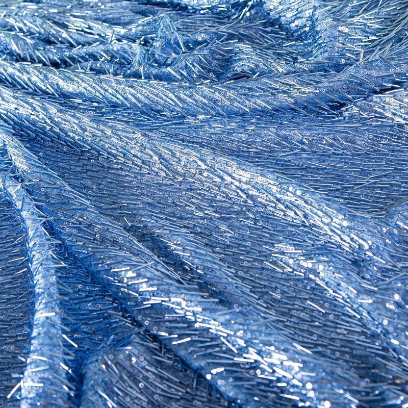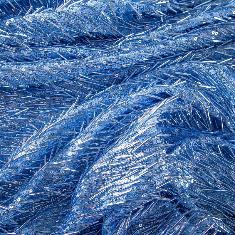Сетка с пайетками и стеклярусом 050-19863 голубой в Якутске