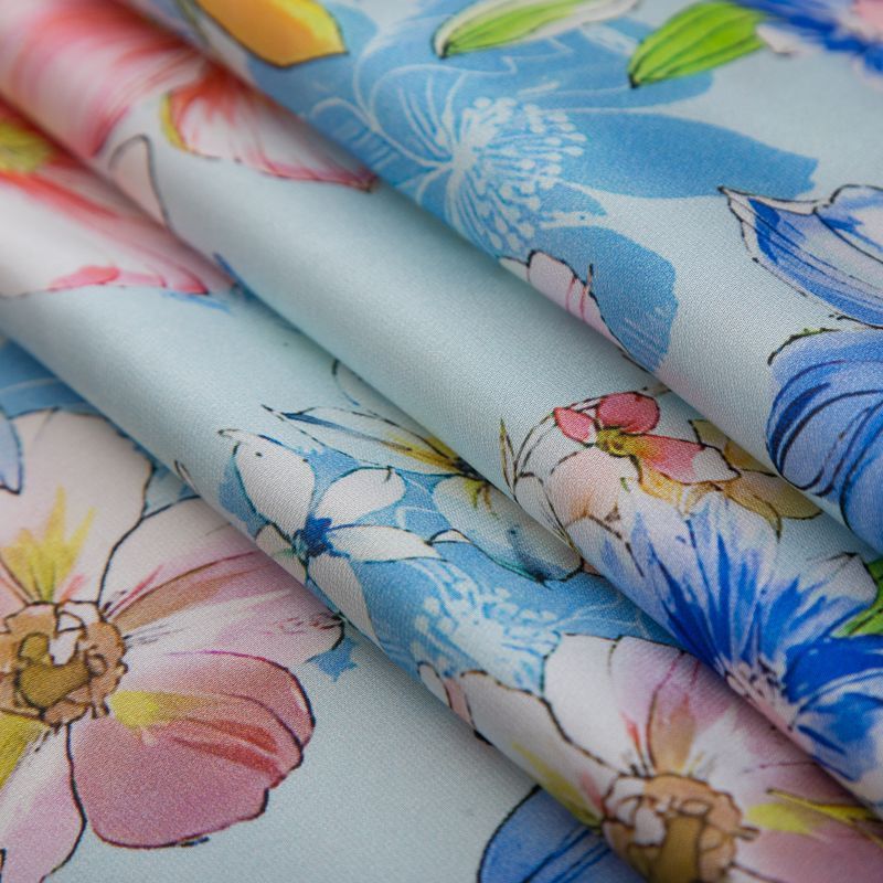 Шелк натуральный Blumarine 064-19246 голубой принтованный