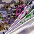 Итальянский атласный шелк с цветным растительным принтом. Вдоль кромки оформлен абстрактными полосками в тон рисунку. Можно использовать в изделии по длине ткани и объемом. Ткань средней плотности, не просвечивает, струится, хорошо драпируется. Поверхность глядкая, имеет благородный сатиновый блеск. Подойдет для смелых образов: летних платьев и сарафанов, как летящих фасонов, так и скроенных по косой, накидок, юбок, блузок, костюмов, широких брюк, домашней одежды.