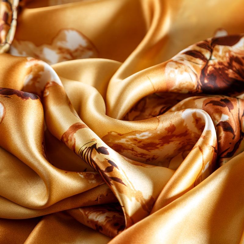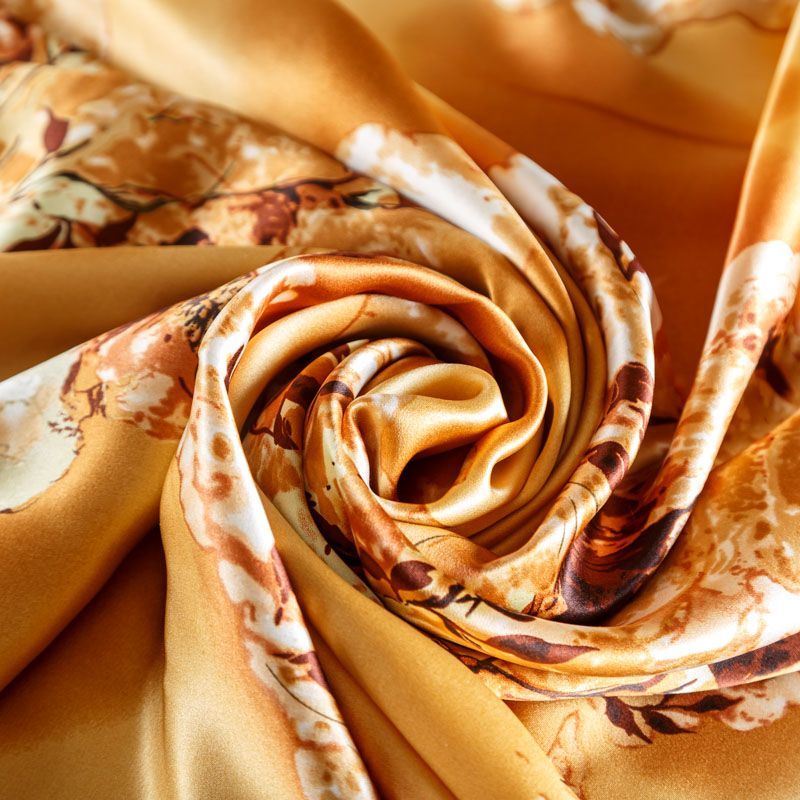 Шелк натуральный К01-056 золотисто-карамельный принтованный в Якутске