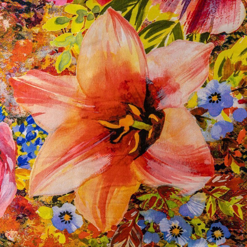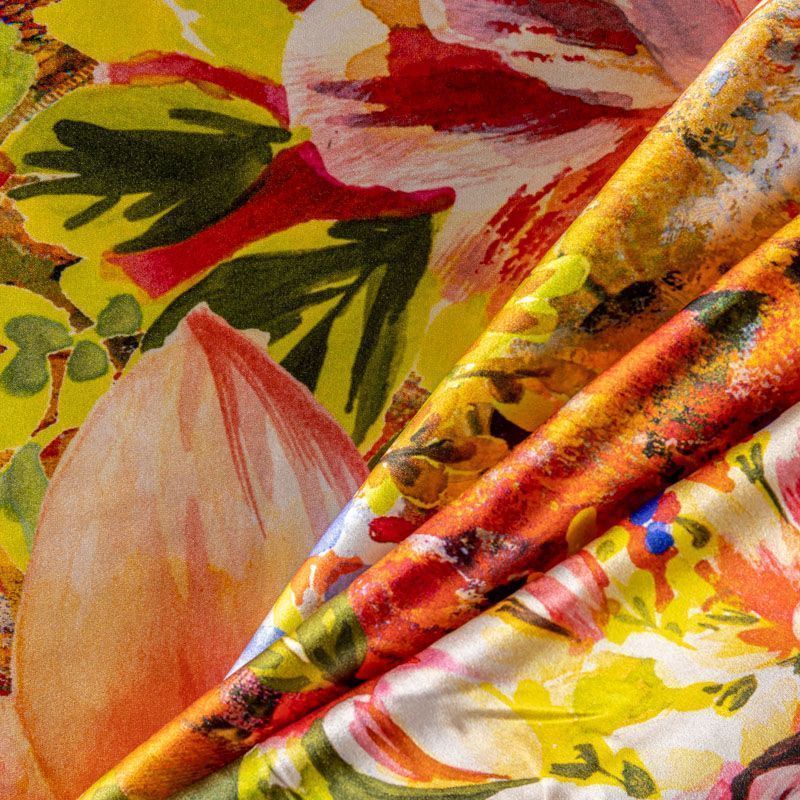 Итальянский натуральный шелк с атласной поверхностью, легкий, струящийся, хорошо драпируется, тянется за счет эластана в составе. Сочетание актуальных в текущем сезоне цветочного и анималистического принтов в насыщенных оттенках будет уместно для пошива летнего сарафана, платья, блузки, костюма в пижамном стиле, широких брюк или юбки.