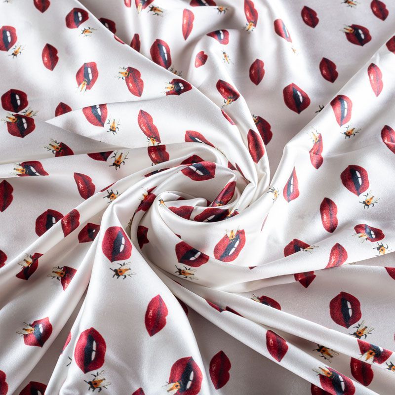 Натуральный шелк с атласной поверхностью, легкий, струящийся, хорошо драпируется, тянется за счет эластана в составе. Модный принт выполнен в ярких оттенках, который будет уместен для пошива летнего сарафана, платья, блузки, костюма в пижамном стиле, широких брюк или юбки.