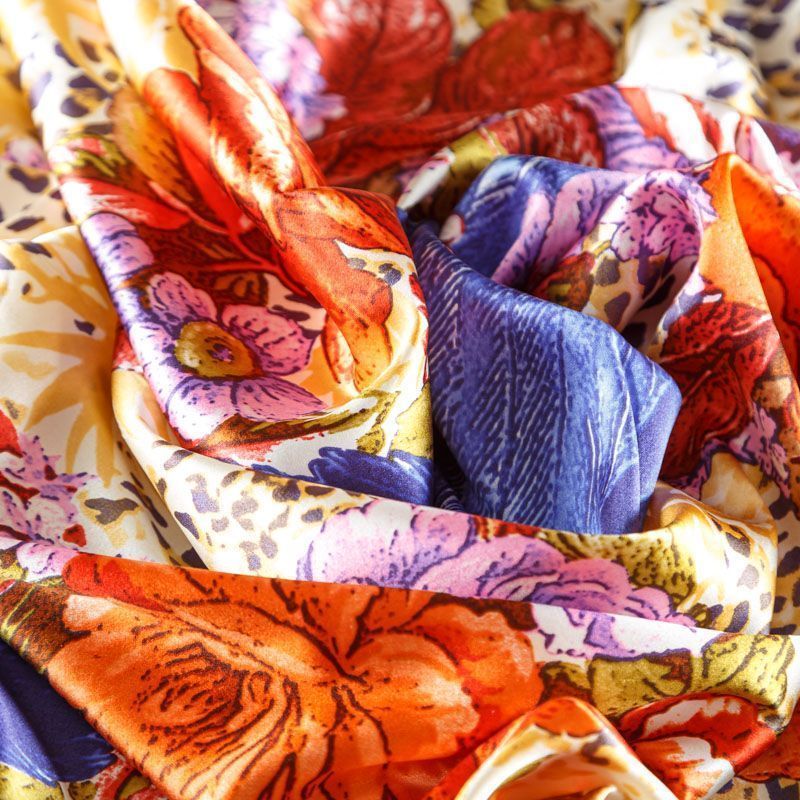 Шелк натуральный К27-0036 сливочный принтованный в Якутске