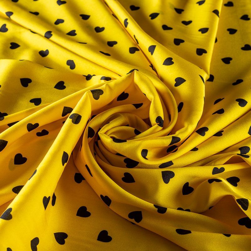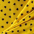 Итальянский креповый шелк с романтическим принтом на солнечном желтом фоне. Ткань тонкая, не просвечивает, отлично драпируется, легкая и струящаяся. Идеально подойдет для пошива платьев и сарафанов расклешенных моделей, с воланами, летящих юбок, топов, блузки, костюма в пижамном стиле.