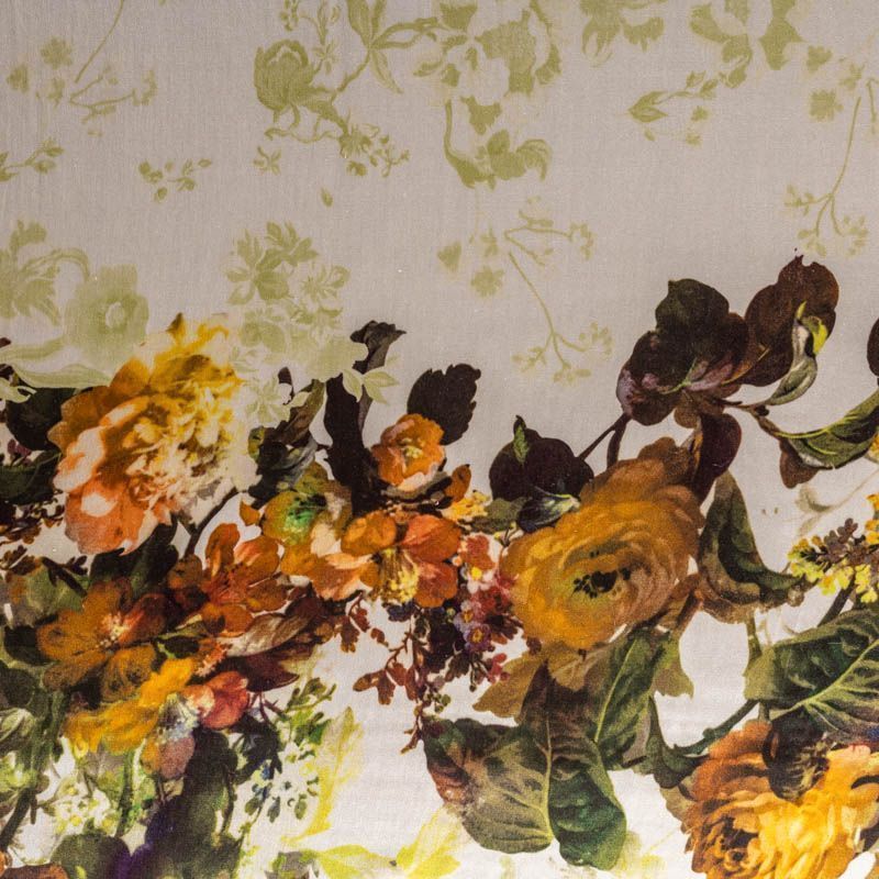 Шелк натуральный К2-394 молочный принтованный в Якутске