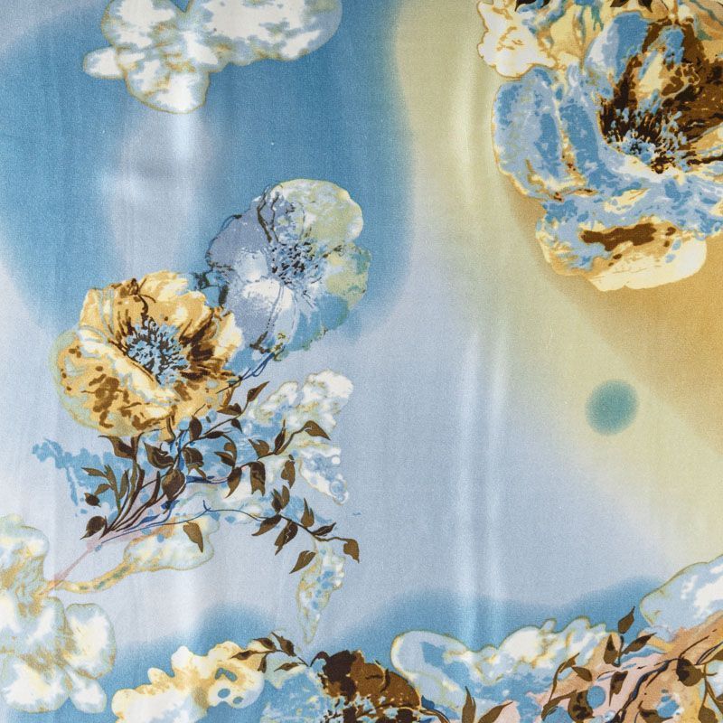 Итальянский атласный шелк с красивым цветочным принтом. Ткань средней плотности, не просвечивает, струится, хорошо драпируется. Поверхность глядкая, имеет благородный сатиновый блеск. Подойдет смелых образов: летних платьев и сарафанов, как летящих фасонов, так и скроенных по косой, накидок, юбок, блузок, костюмов, широких брюк, домашней одежды.