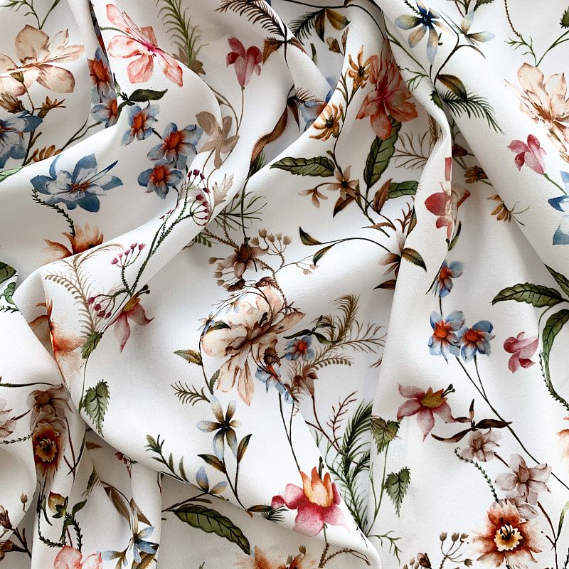 Шелк натуральный К32-154 молочный принтованный в Якутске