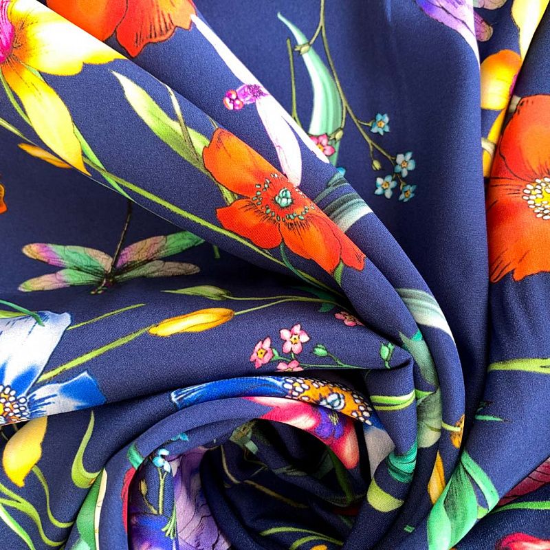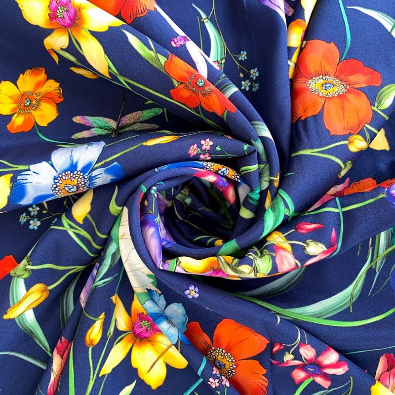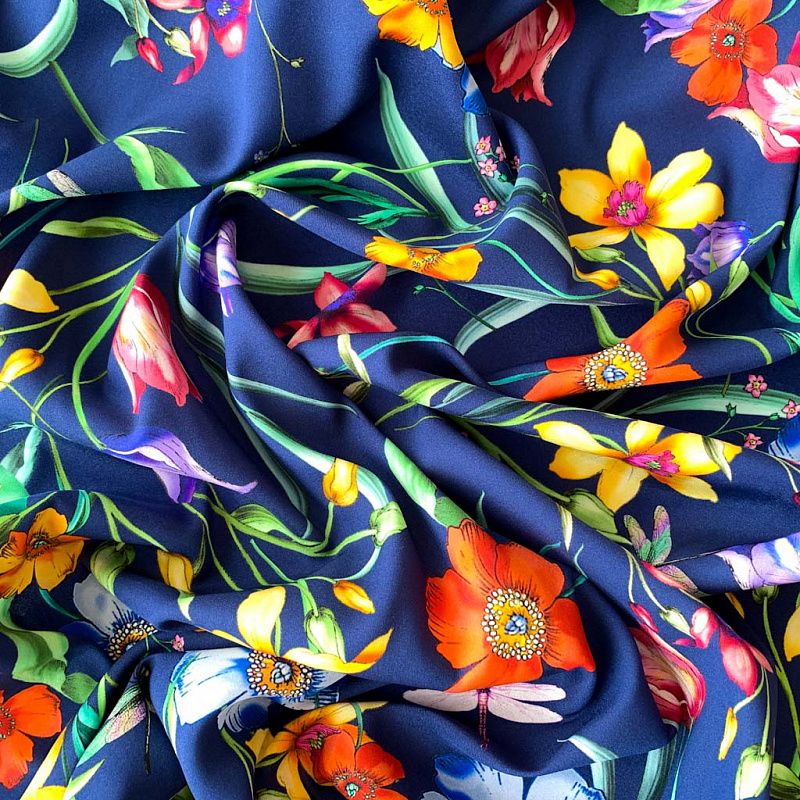 Шелк натуральный К32-155 темно-синий принтованный в Якутске