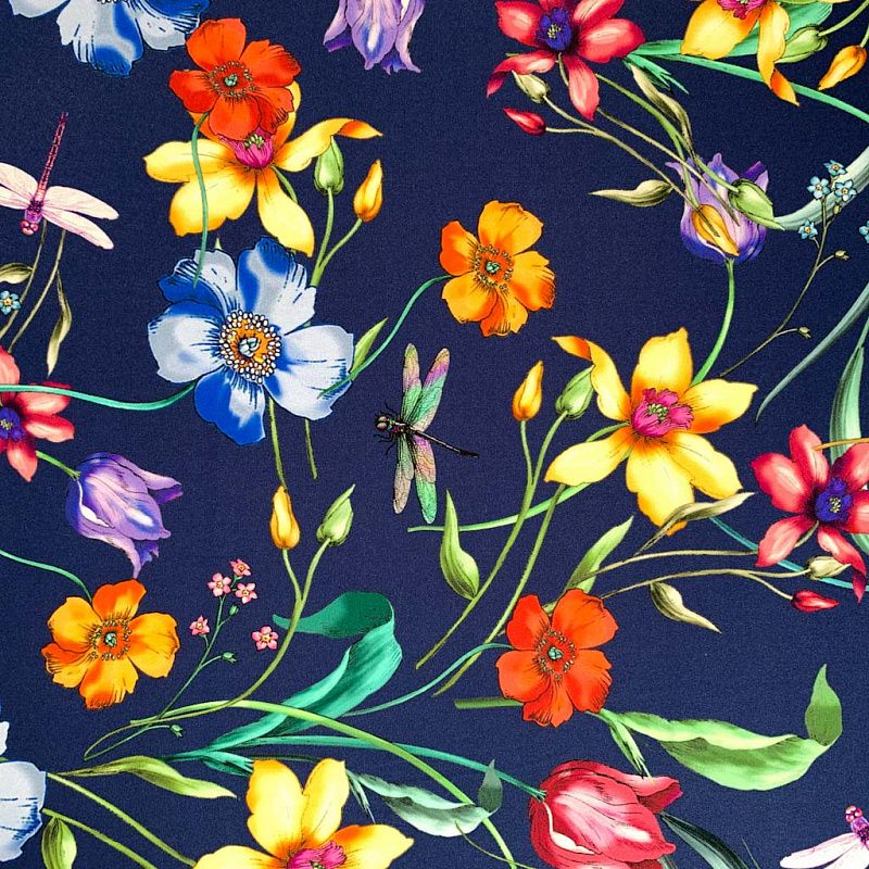 Шелк натуральный К32-155 темно-синий принтованный