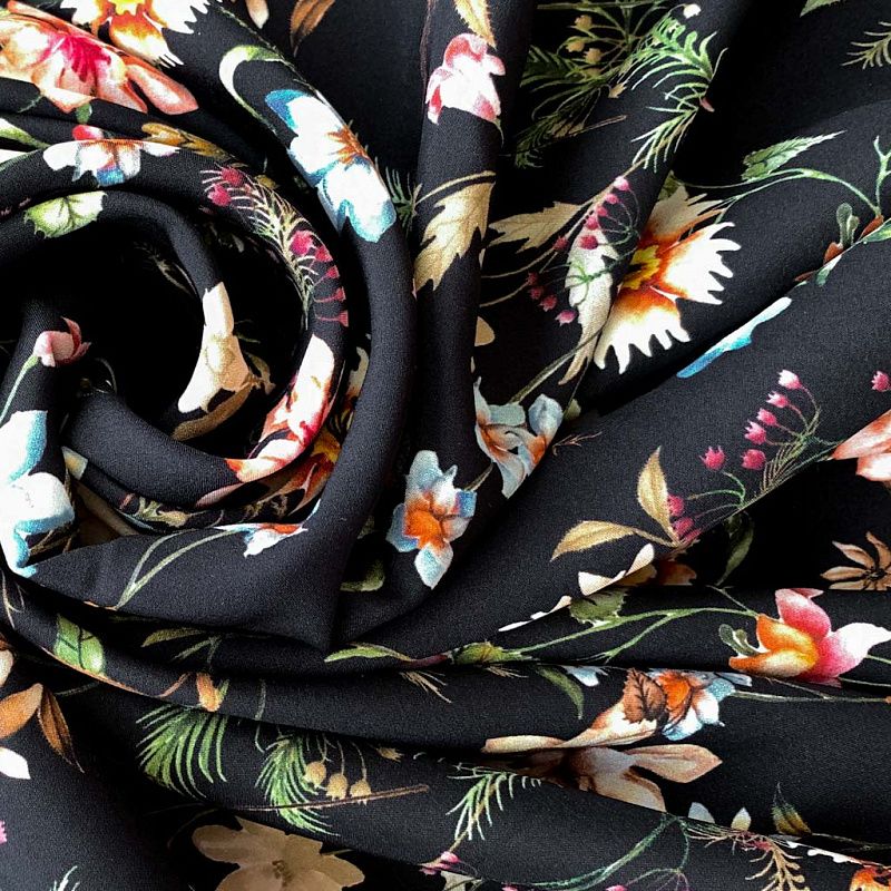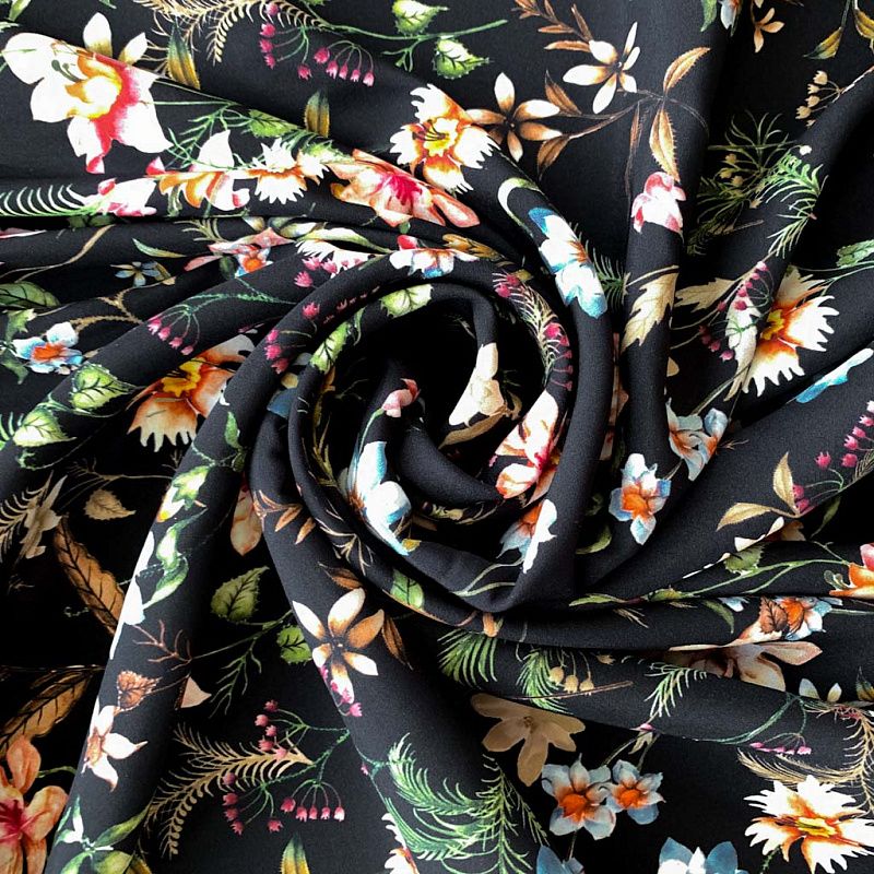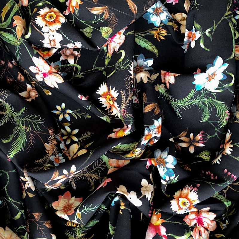 Шелк натуральный К32-158 черный принтованный в Якутске