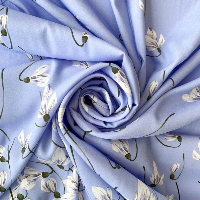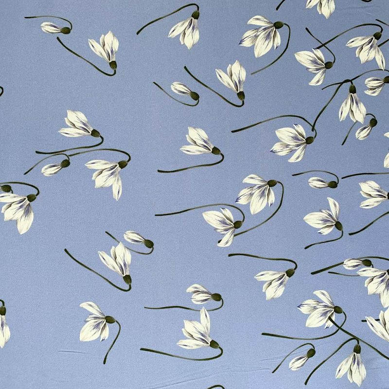 Креповая матовая поверхность, хорошо драпируется и тянется, подснежники.