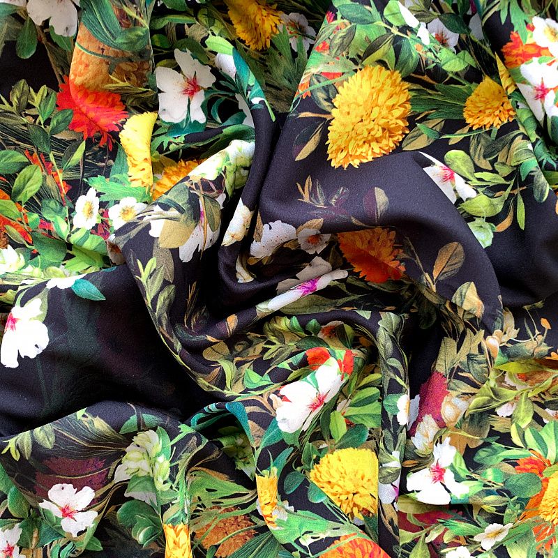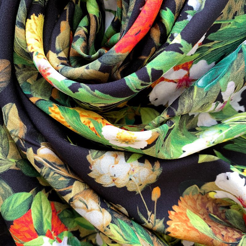 Шелк натуральный К32-171 черный принтованный в Якутске