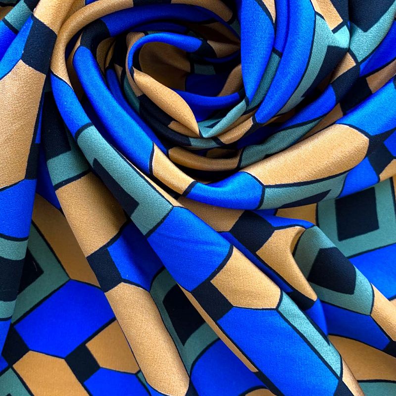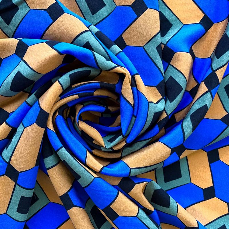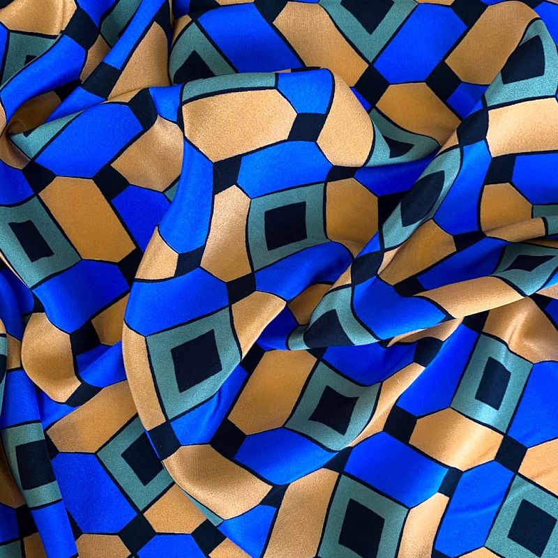 Шелк натуральный К32-232 ярко-синий принтованный в Якутске