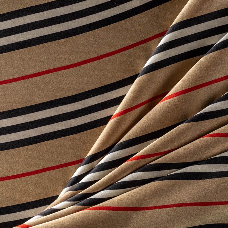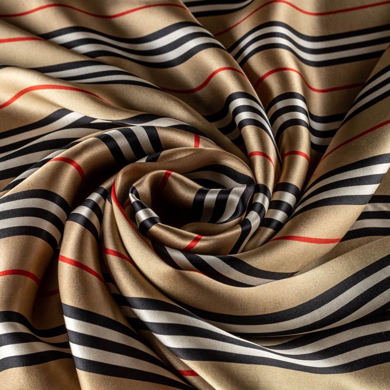 Атласная глянцевая поверхность, легкий, струящийся, хорошо драпируется. Полоска вертикальная