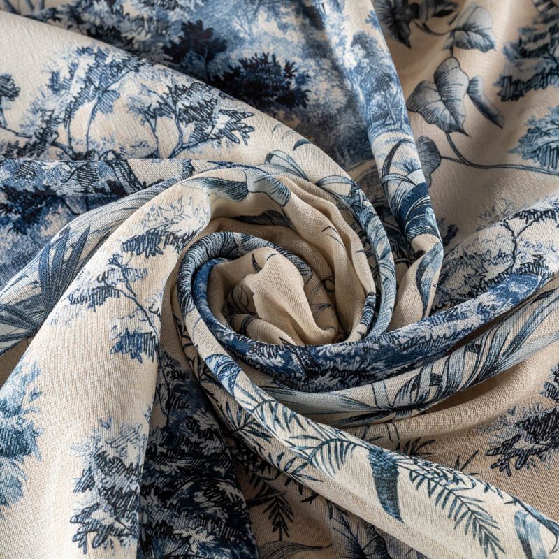 Тонкий, слегка рельефный итальянский шелк с добавлением тончайшей шерсти с актуальным принтом тропических растений. Ткань немного рыхлая, но не прозрачная. Хорошо драпируется струящимися складками. Идеально подойдет для платья, юбки, костюма для прохладного лета или теплой осени.