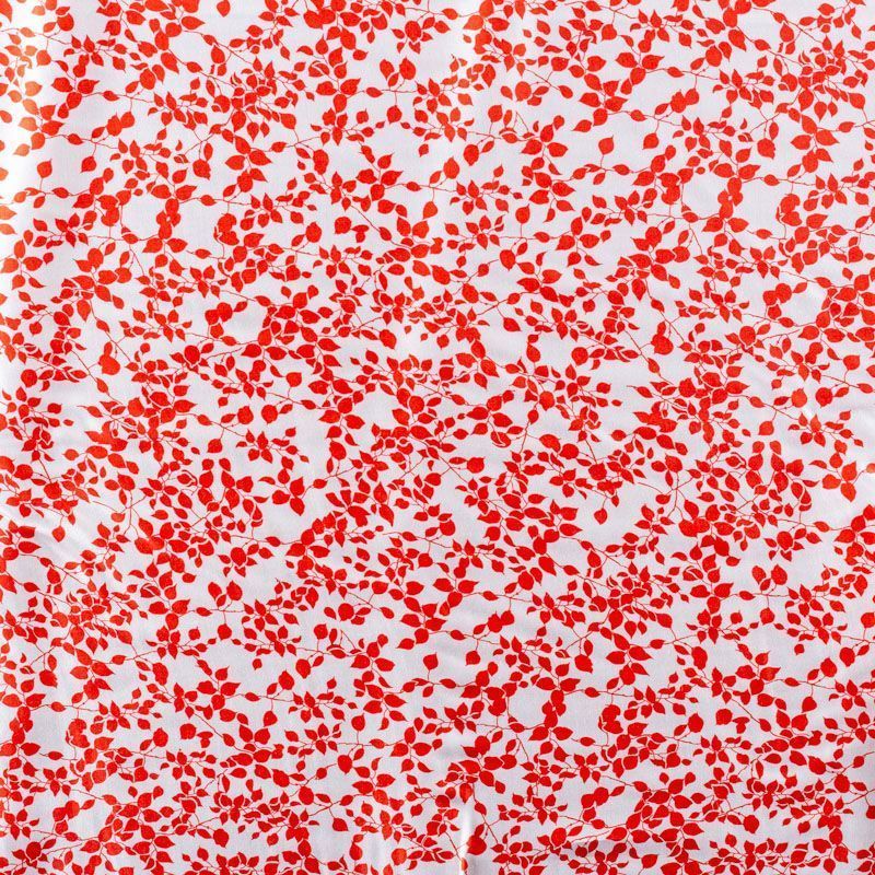 Итальянский плательно-блузочный штапель с добавлением шелка белого цвета с нежным растительным принтом кораллового оттенка. Мягкий, нежный, пластичный, шелковистый на ощупь, хорошо драпируется, практичный. Особенно актуален летом, он очень легкий, обволакивающий прохладой. Идеален для пошива летней детской одежды, сарафанов, платьев, юбок, блузок, домашней одежды: халатов, ночной пижамы.