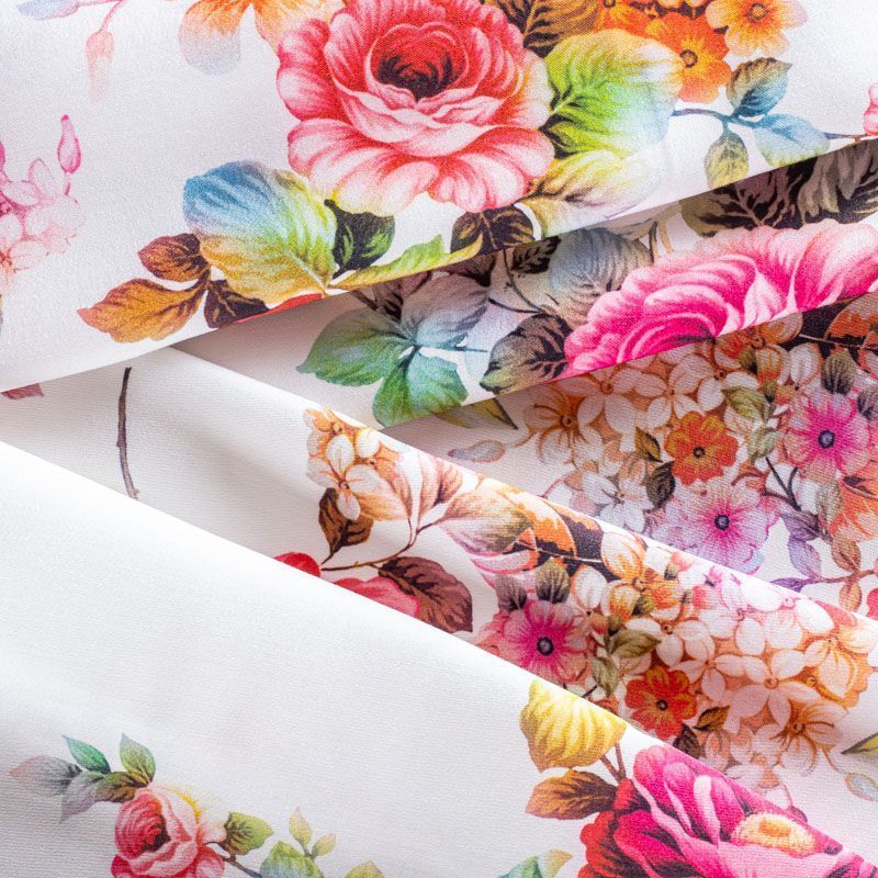 Плательно-блузочный штапель с добавлением шелка с ярким цветочным принтом. Ткань очень мягкая, нежная, пластичная, шелковистая на ощупь, хорошо драпируется, практичная. Особенно актуальна летом, шелк-штапель очень легкий, обволакивающий прохладой. Идеален для пошива летней детской одежды, сарафанов, платьев, юбок, блузок, домашней одежды: халатов, ночной пижамы.