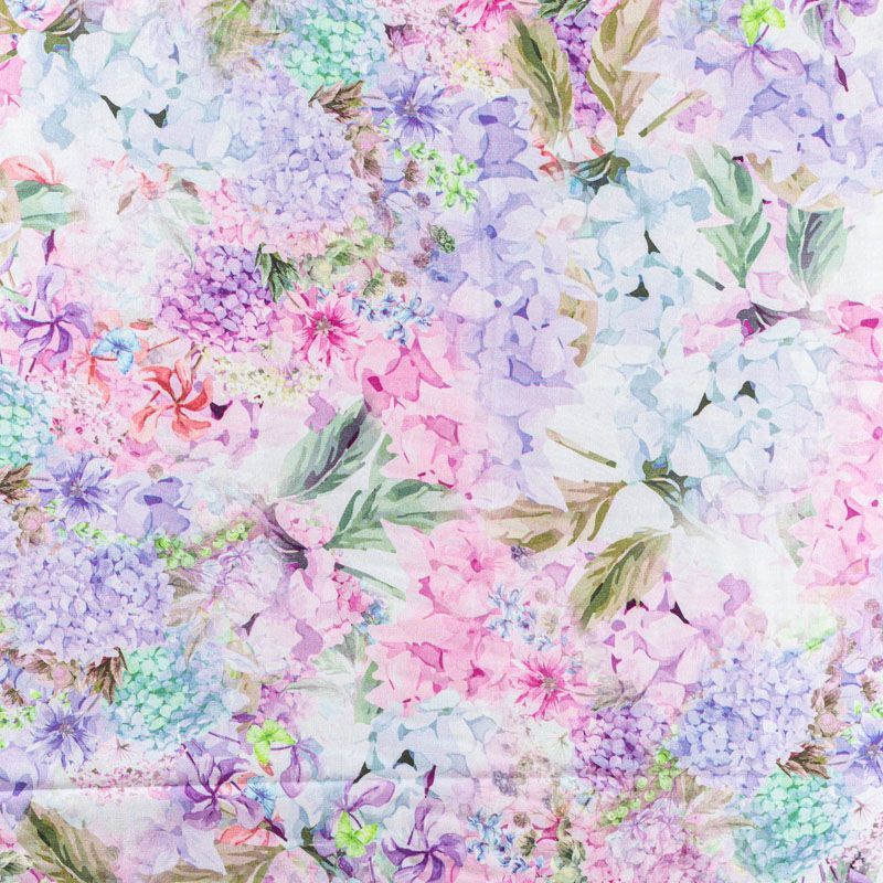 Плательно-блузочный штапель с добавлением шелка с нежным цветочным принтом в пастельных тонах. Ткань очень мягкая, нежная, пластичная, шелковистая на ощупь, хорошо драпируется, практичная. Особенно актуальна летом, шелк-штапель очень легкий, обволакивающий прохладой. Идеален для пошива летней детской одежды, сарафанов, платьев, юбок, блузок, домашней одежды: халатов, ночной пижамы.