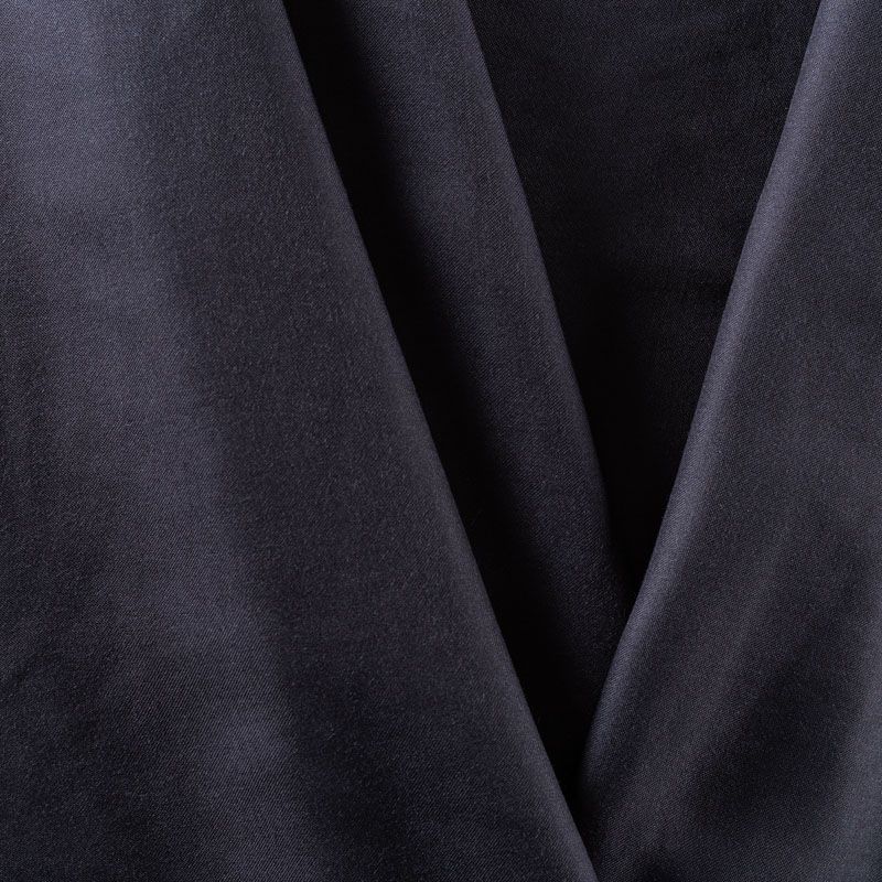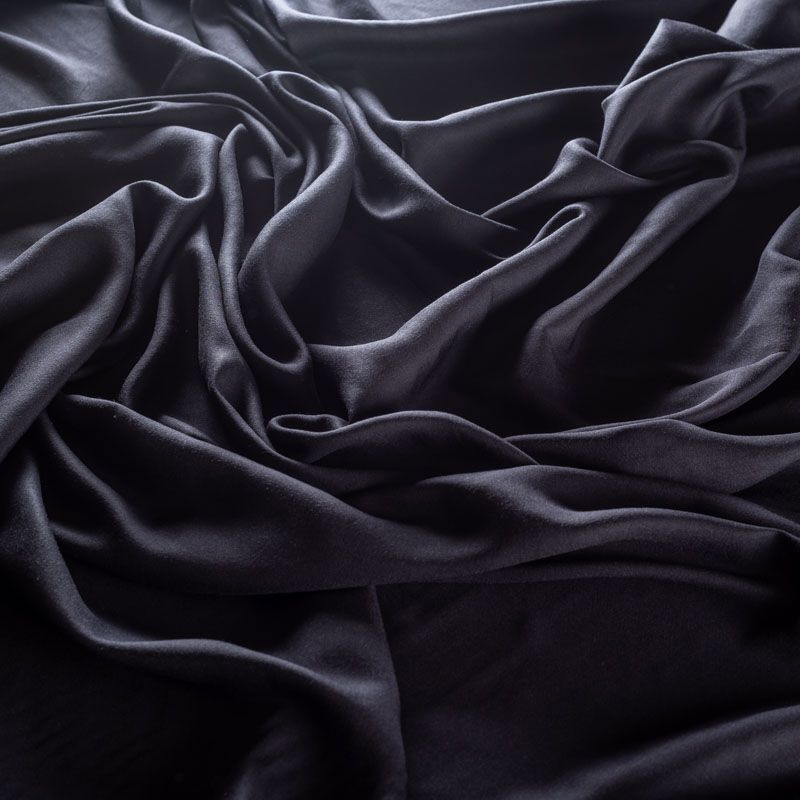Плательно-блузочный штапель с добавлением шелка графитового, почти черного оттенка. Мягкий, нежный, пластичный, шелковистый на ощупь, хорошо драпируется, практичный. Особенно актуален летом, он очень легкий, обволакивающий прохладой. Идеален для пошива летней детской одежды, сарафанов, платьев, юбок, блузок, домашней одежды: халатов, ночной пижамы.
