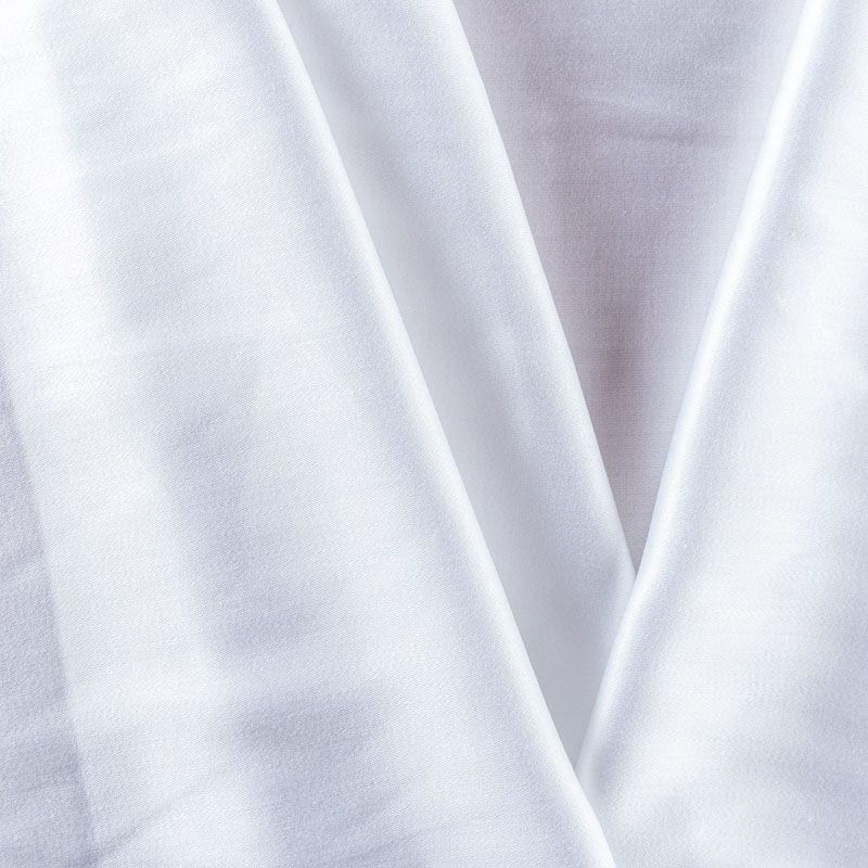Плательно-блузочный штапель с добавлением шелка белого цвета. Мягкий, нежный, пластичный, шелковистый на ощупь, хорошо драпируется, практичный. Особенно актуален летом, он очень легкий, обволакивающий прохладой. Идеален для пошива летней детской одежды, сарафанов, платьев, юбок, блузок, домашней одежды: халатов, ночной пижамы.
