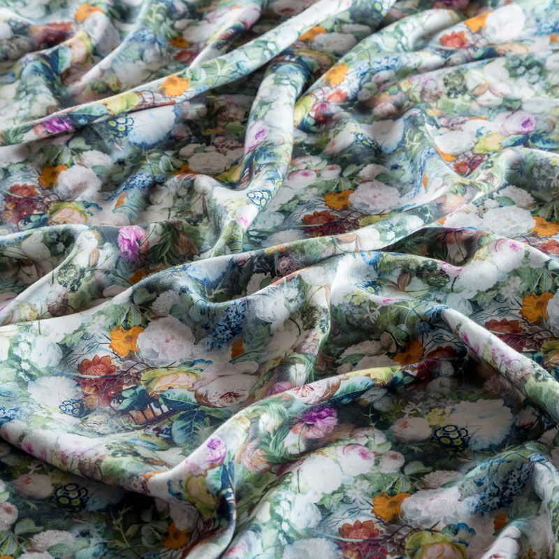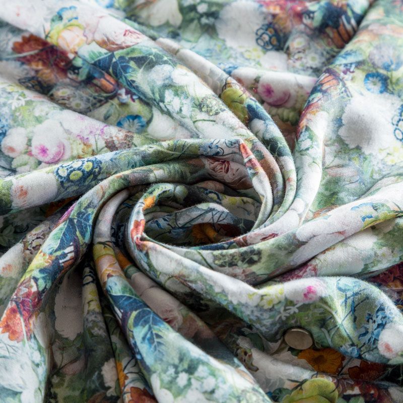 Плательно-блузочный штапель с добавлением шелка с акварельным цветочным принтом. Ткань очень мягкая, нежная, пластичная, шелковистая на ощупь, хорошо драпируется, практичная. Особенно актуальна летом, шелк-штапель очень легкий, обволакивающий прохладой. Идеален для пошива летней детской одежды, сарафанов, платьев, юбок, блузок, домашней одежды: халатов, ночной пижамы.