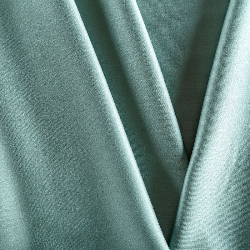 Плательно-блузочный штапель с добавлением шелка в мятно-бирюзовом оттенке. Мягкий, нежный, пластичный, шелковистый на ощупь, хорошо драпируется, практичный, тянется за счет эластана в составе. Особенно актуален летом, он очень легкий, обволакивающий прохладой. Идеален для пошива летней детской одежды, сарафанов, платьев, юбок, блузок, домашней одежды: халатов, ночной пижамы.