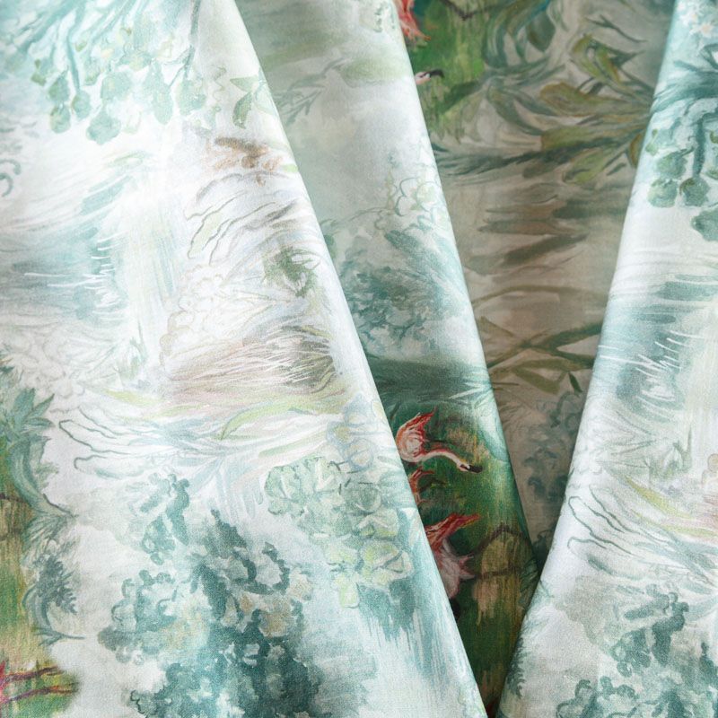 Итальянский плательно-блузочный штапель с добавлением шелка зеленого оттенка с акварельным принтом. Мягкий, нежный, пластичный, шелковистый на ощупь, хорошо драпируется, практичный. Особенно актуален летом, он очень легкий, обволакивающий прохладой. Идеален для пошива летней детской одежды, сарафанов, платьев, юбок, блузок, домашней одежды: халатов, ночной пижамы.