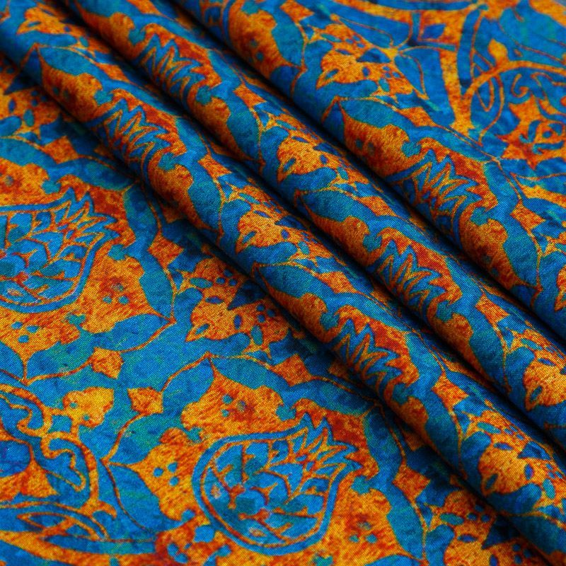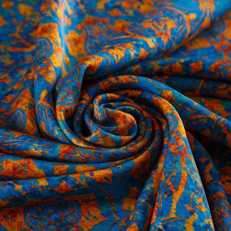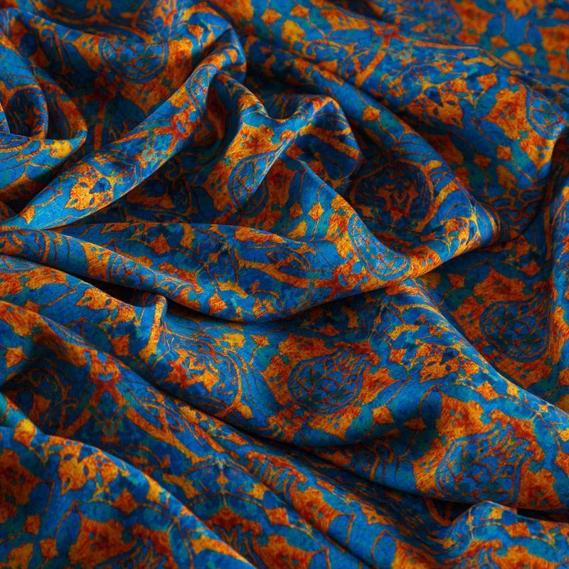 Шелк-штапель 069-17804 лазурно-синий принтованный в Якутске