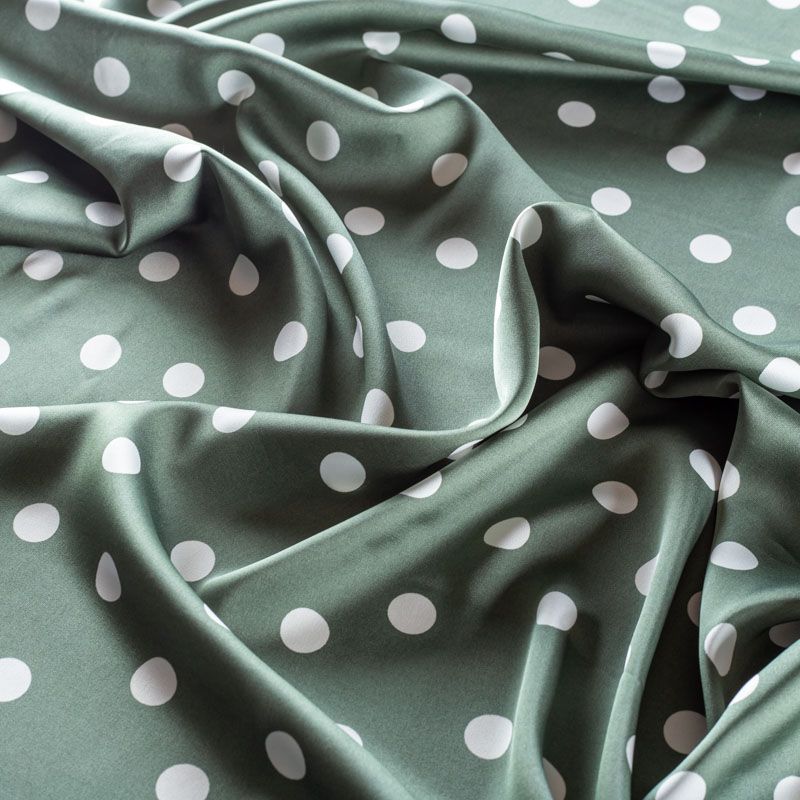 Тонкая, легкая, струящаяся ткань, не просвечивает, очень нежная и прятная к телу, обладает благородным атласным блеском, хорошо драпируется, тянется за счет эластана в составе. Идеально подойдет для пошива блузок, платьев и юбок, а также топов, платков, домашней одежды.