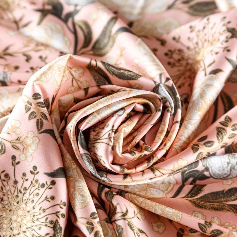 Шелк синтетический 065-02651 пудрово-розовый принтованный