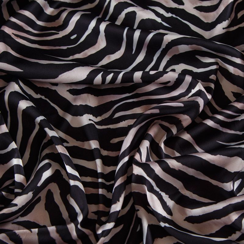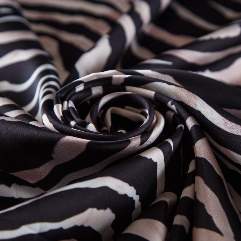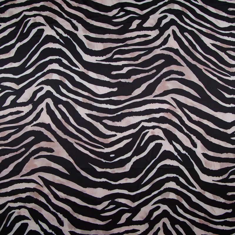 Шелк синтетический 065-13924 бежево-черный принтованный