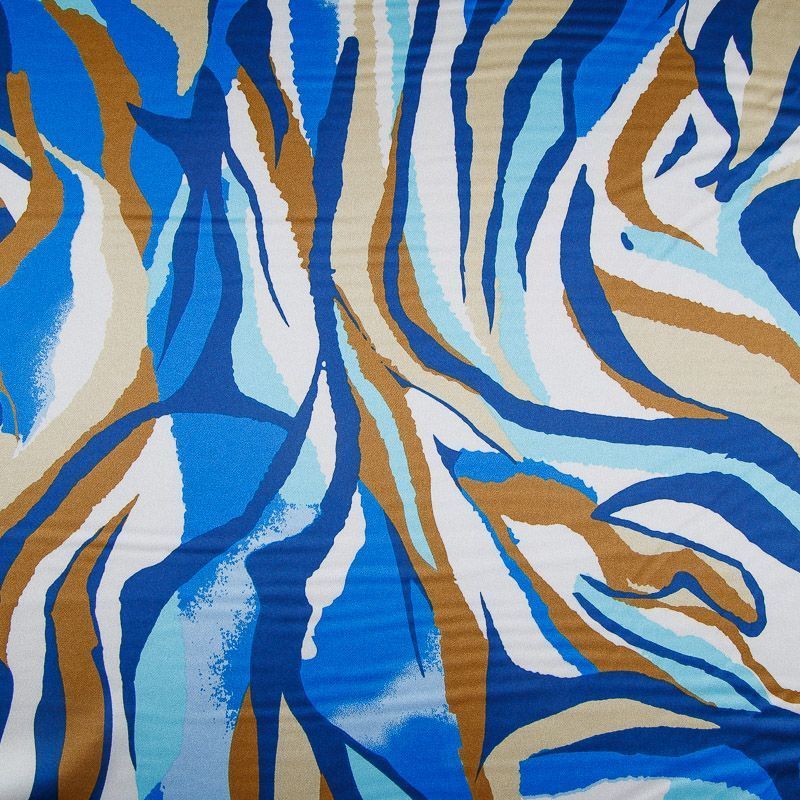 Шелк синтетический стрейч 065-17539 сине-голубой принтованный в Якутске