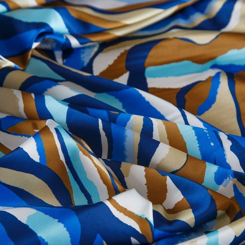 Шелк синтетический стрейч 065-17539 сине-голубой принтованный