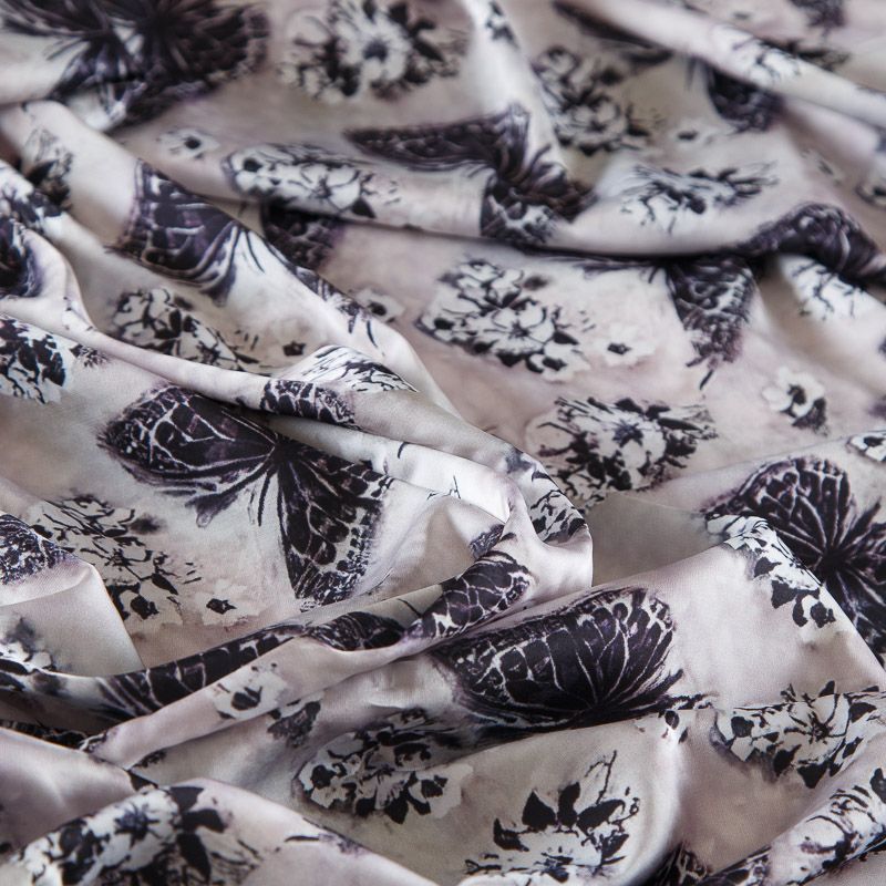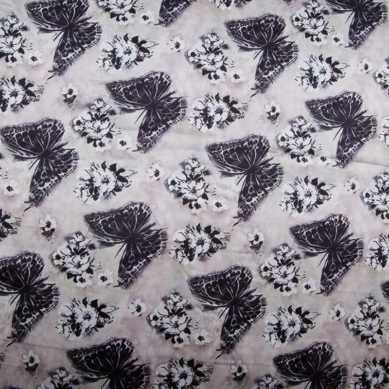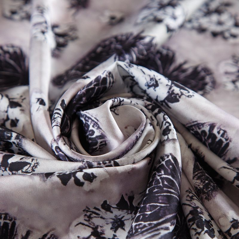 Шелк синтетический стрейч 065-17784 черый принтованный в Якутске