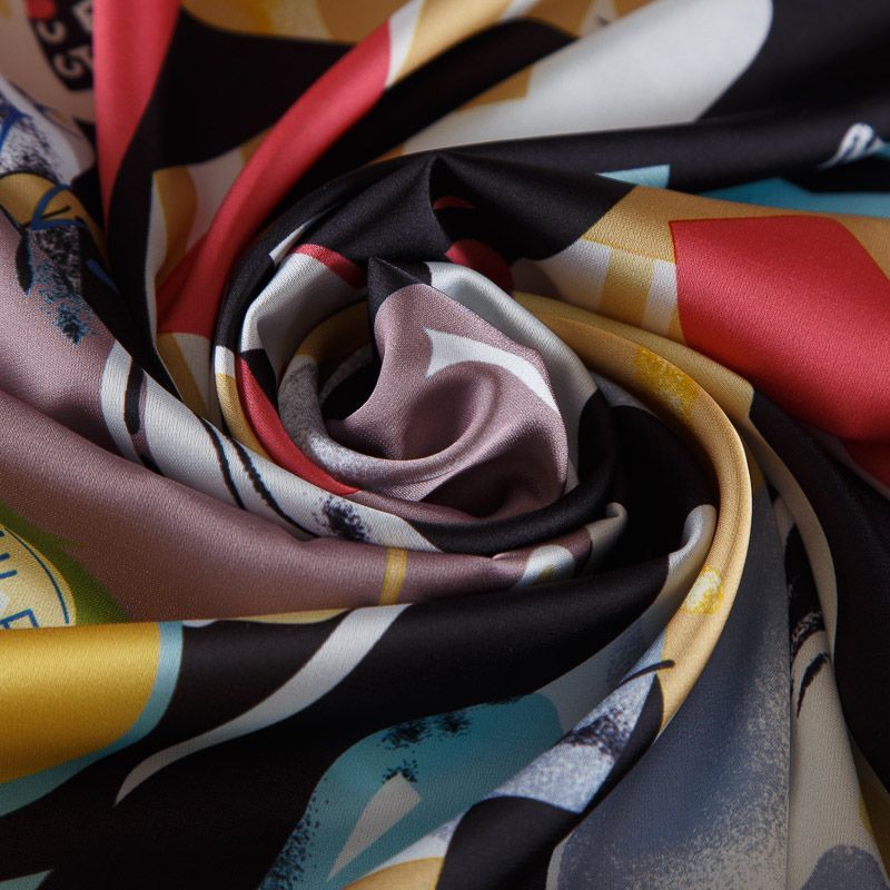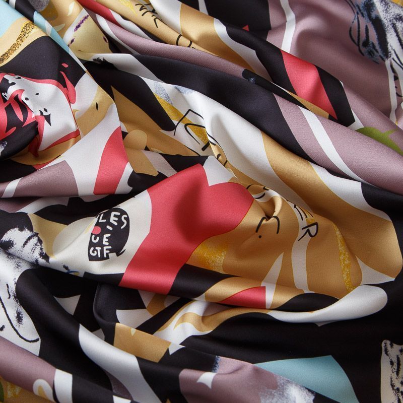Шелк синтетический стрейч 065-17787 черный принтованный в Якутске